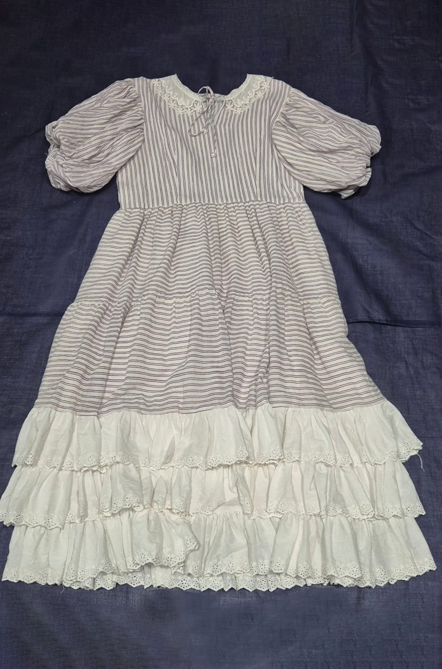 Handloom cotton layered dress with attached cotton lining, detailed with laces and neck patch . Sizes- S,M,L,XL, XXL, Fabric-Handloom cotton