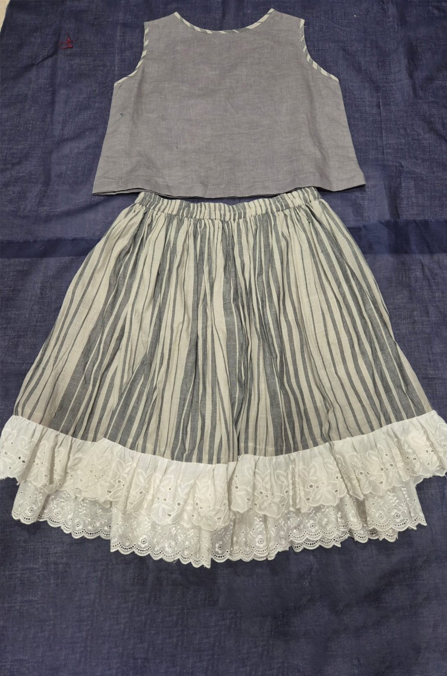 Description- Handloom cotton skirt with attached cotton lining, detailed with laces.